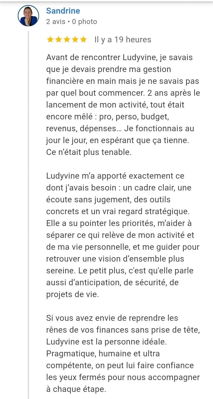 👩💼 Ludyvine, Coach en pouvoir d'achat, elle t'accompagne pour reprendre les commandes de ton budget et optimiser ton pouvoir d'achat avec méthode, pour retrouver sérénité et autonomie.